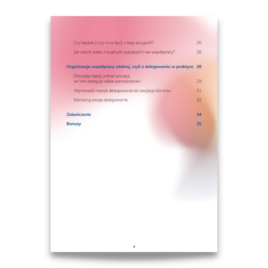 Mój e-book kieruję przede wszystkim do przedsiębiorców, ale uważam, że będzie on bardzo wartościowy również dla wirtualnych asystentek, które chcą wspierać klientów w nauce delegowania. O czym w nim mówię?